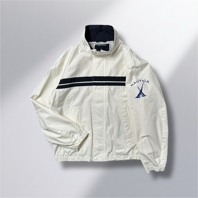 NAUTICAセーリングジャケット M ナイロンジャケット 短丈 刺繍ロゴ 白