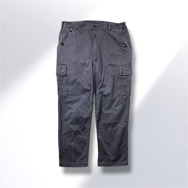 90年代 Paul Rove のユーロワークカーゴパンツ。 深みのある グレーネイビー と落ち着いたシルエットで、“きれいめ × ワーク” のバランスが上手く融合した1本です。 カーゴならではのポケットや Dカンなどの実用ディテールがありつつ、太すぎないラインは 大人カジュアル としても活躍。 ロールアップやシューズとの合わせで、 トラッド〜ノームコアまで幅広い着こなしに対応します。 日常のカジュアルに ほんの少し個性 を足したい方におすすめです。