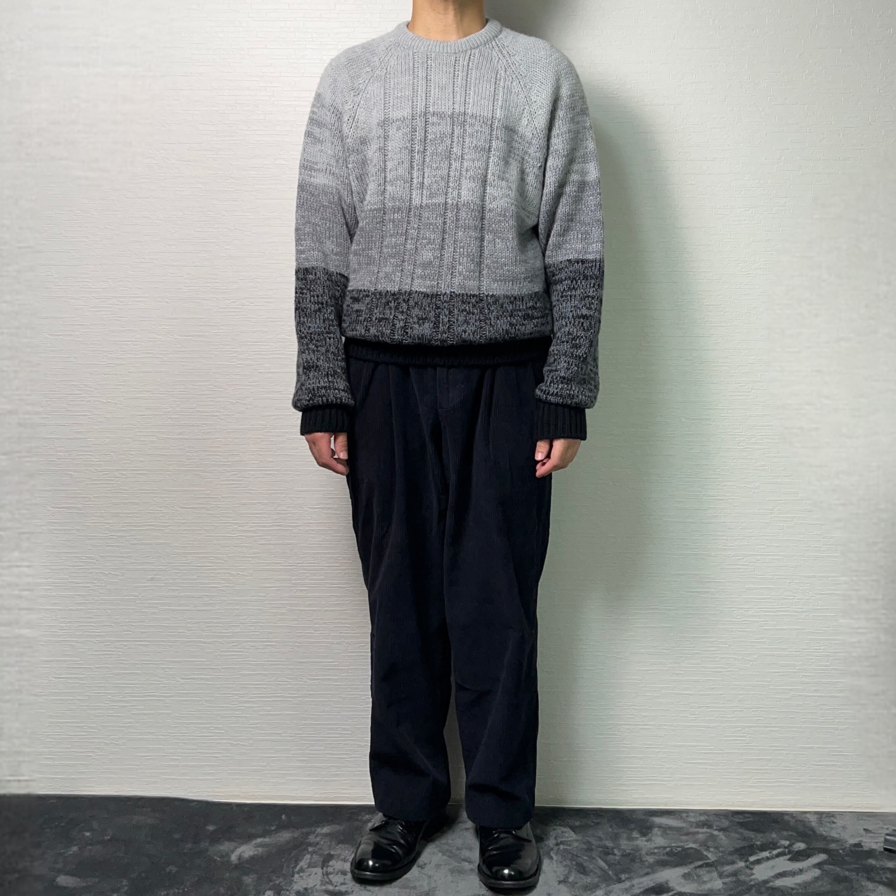 淡いグレーからチャコールへと移り変わる配色が魅力的で、ラグランスリーブ仕様のゆるめシルエット。