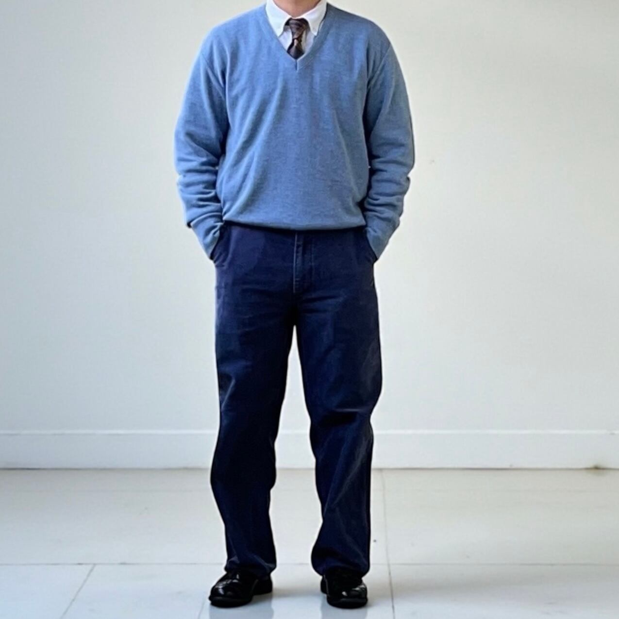 80~90's'USA製Vネックニット ブルー 薄手 L size