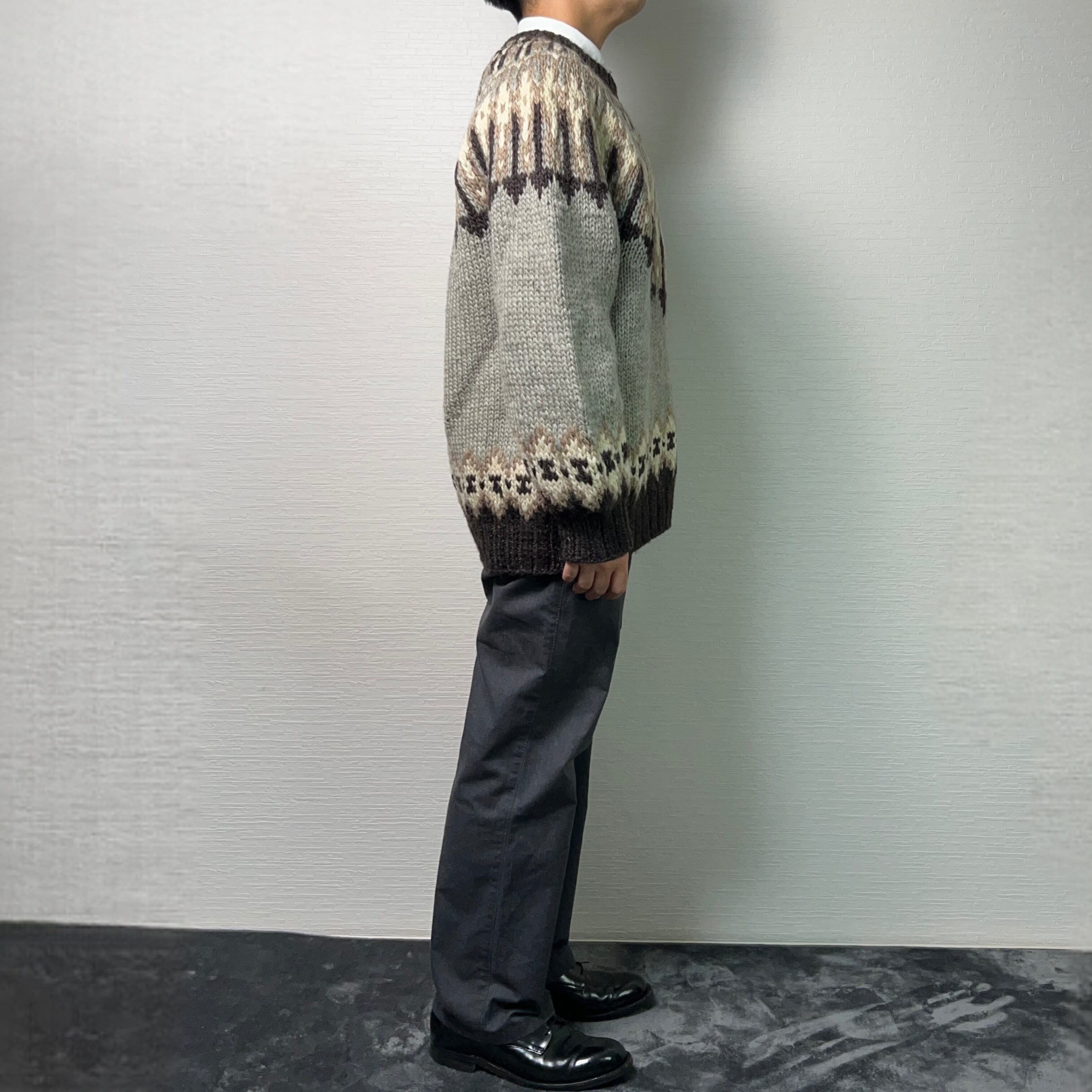温かみのあるハンドニット仕様で、クラシカルなノルディック柄が印象的。