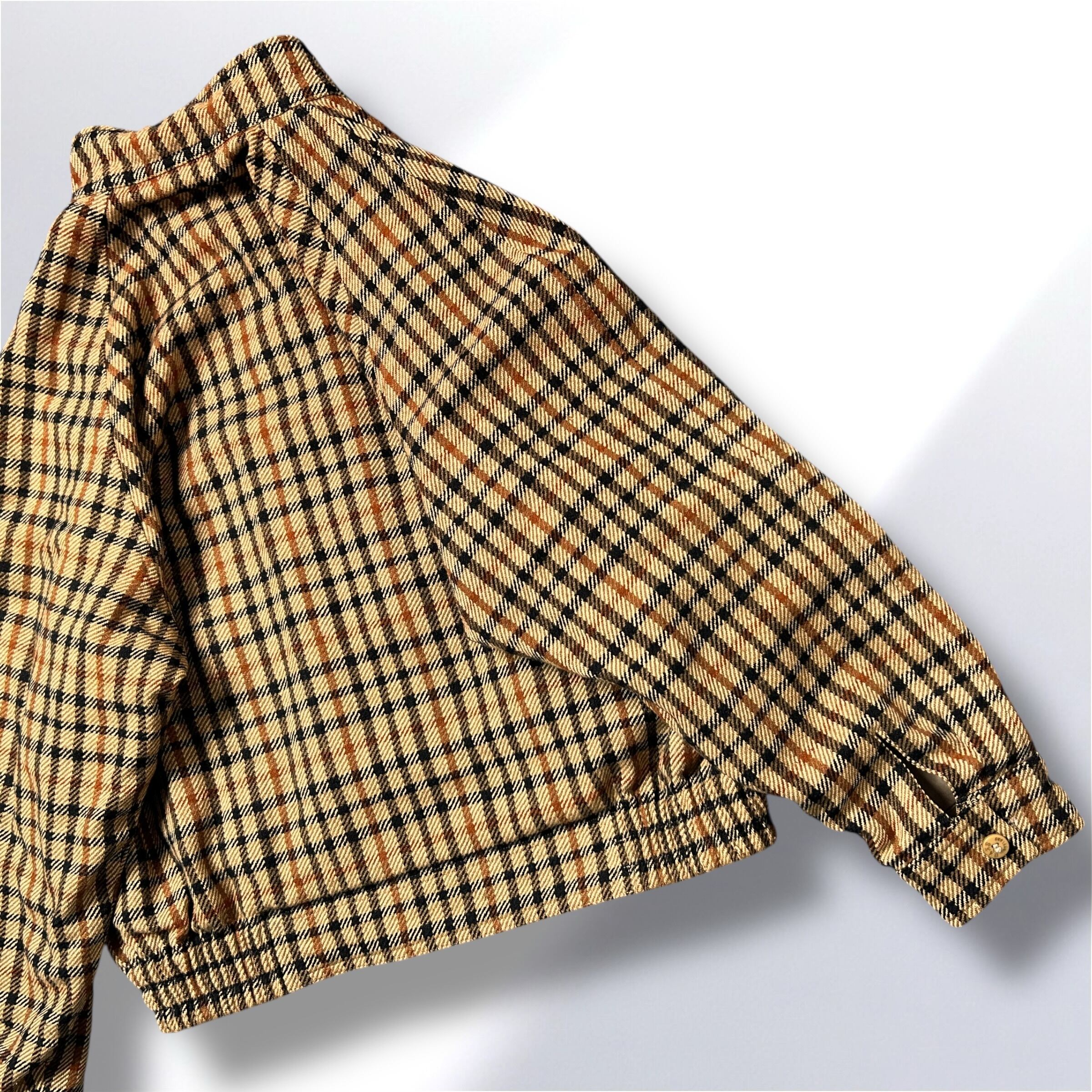 クラシックなグレンチェック柄と、バランスの取りやすいショート丈が魅力の逸品。