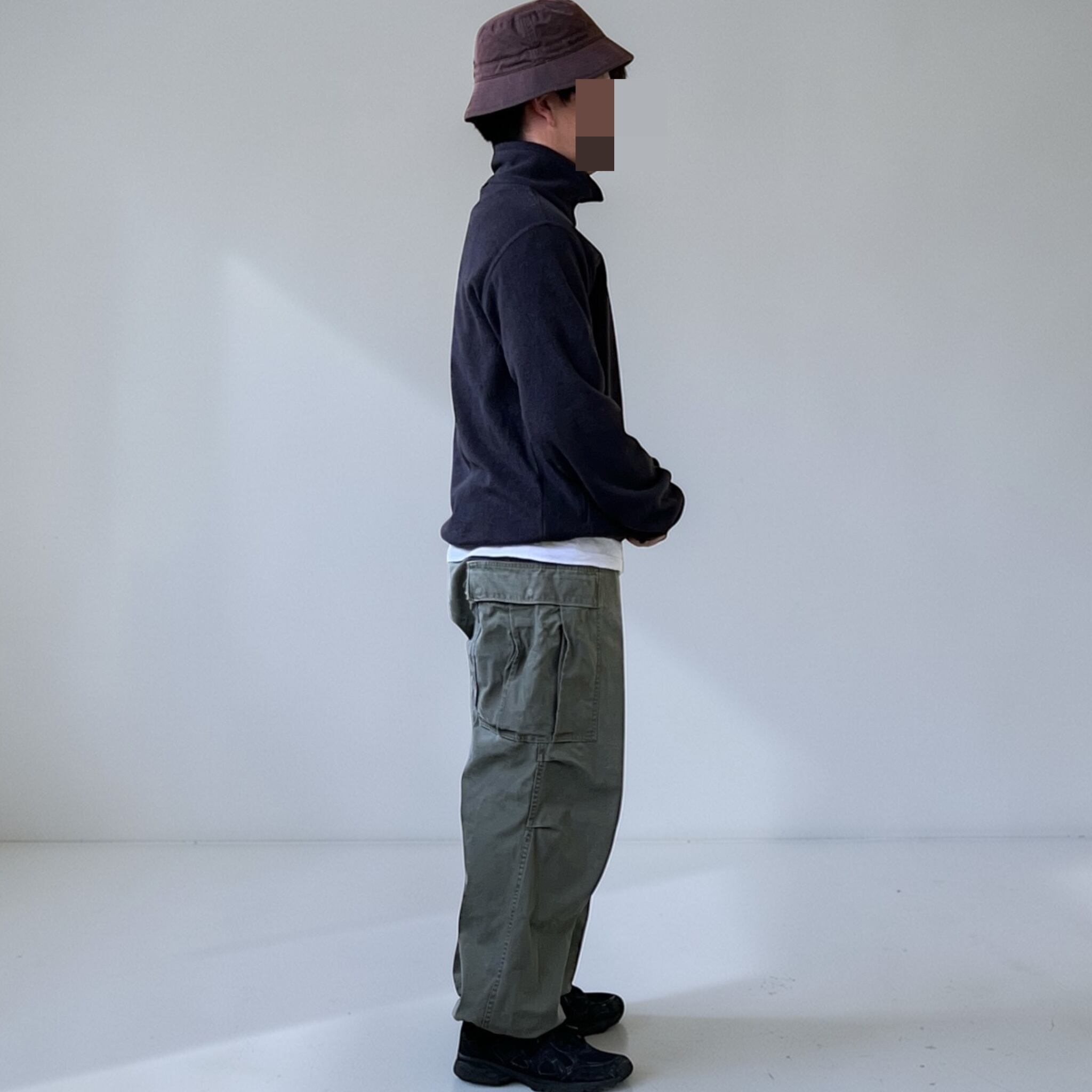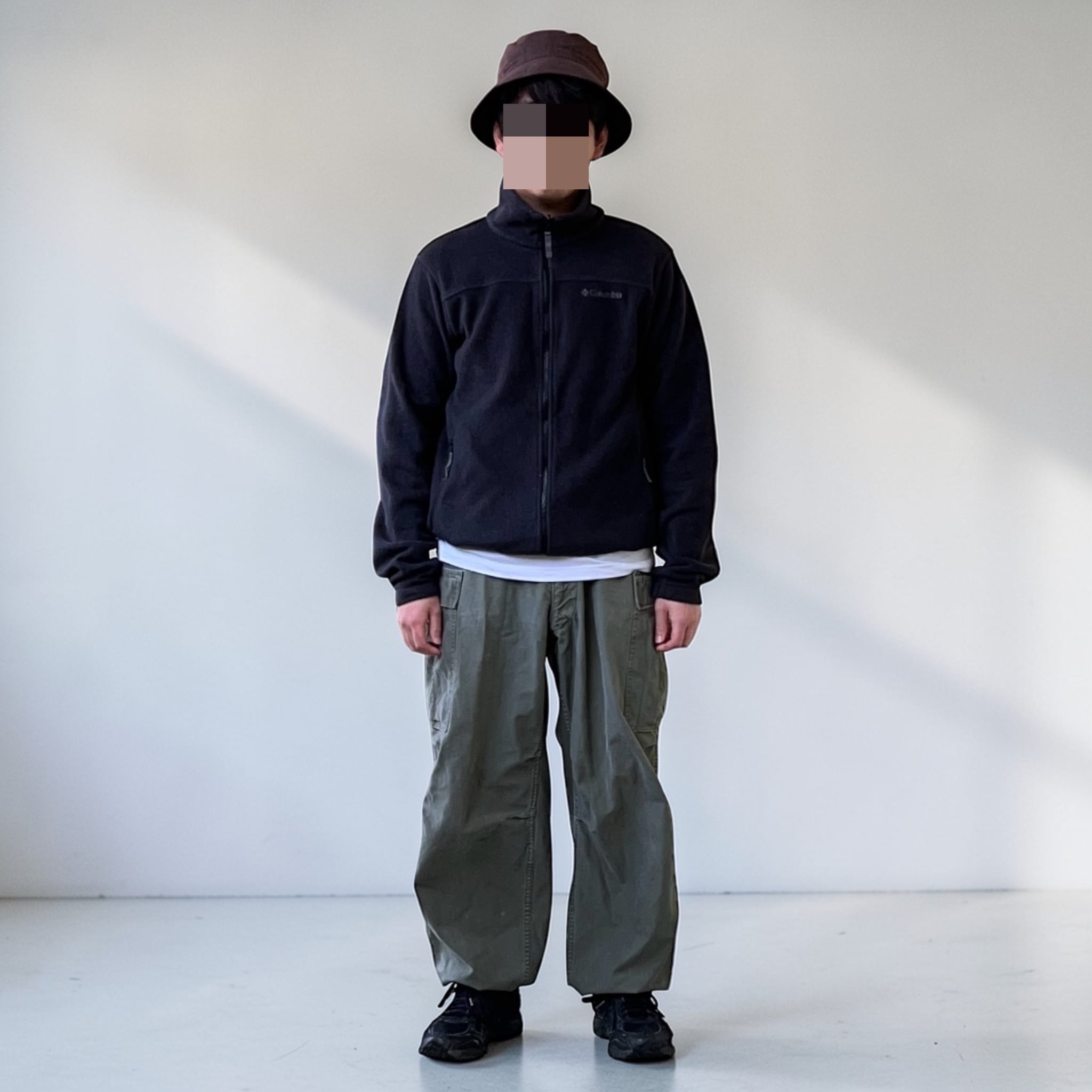 シンプルなフリースでも、スタイリングに程よい変化をつけられます。