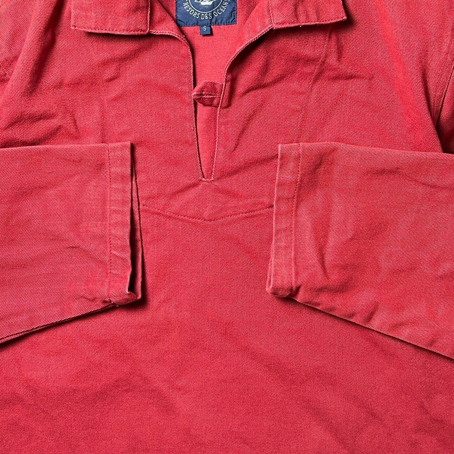 フィッシャーマンスモック レッド コットン プルオーバー ユーロ古着