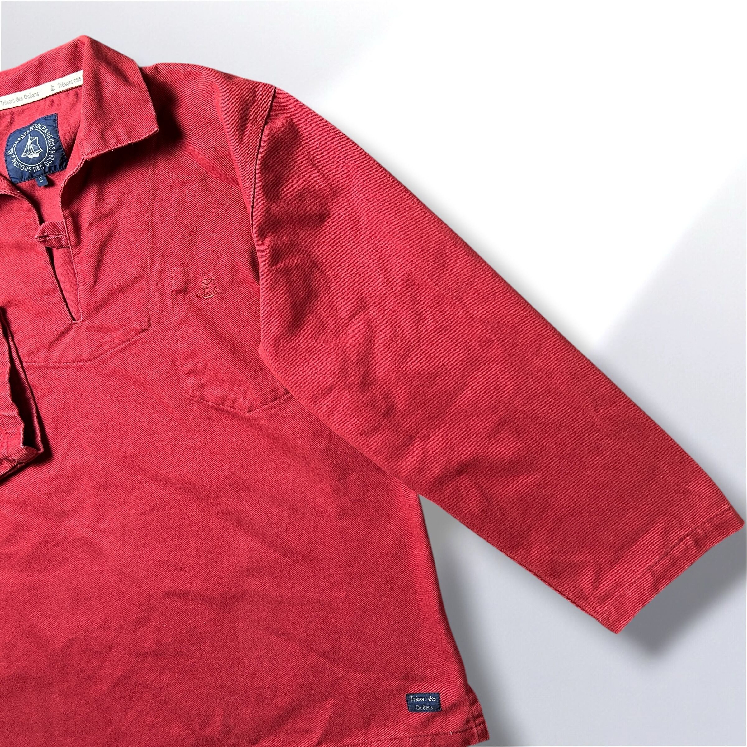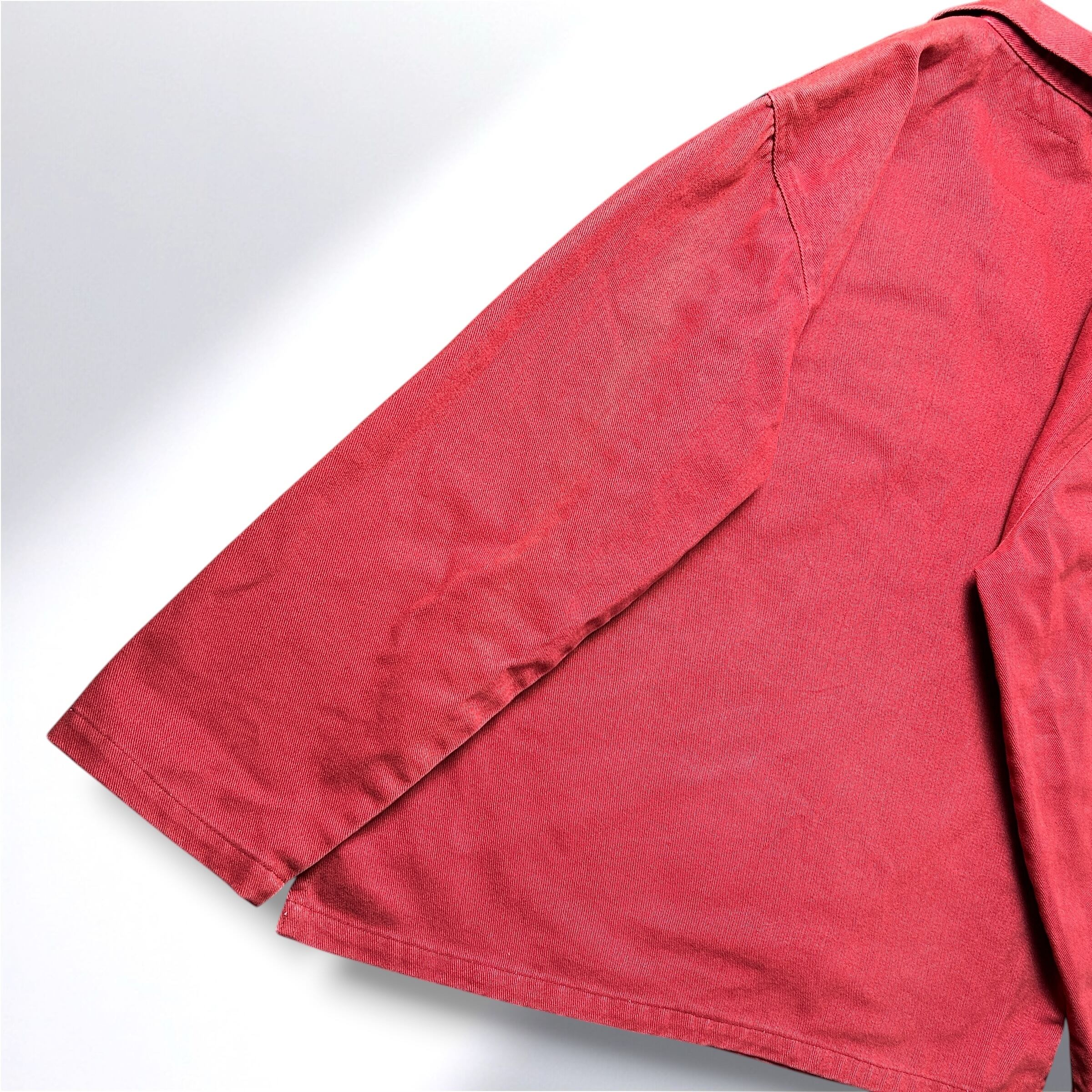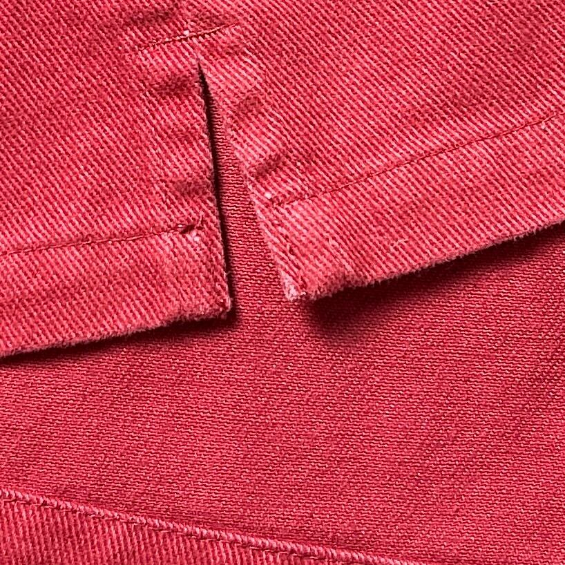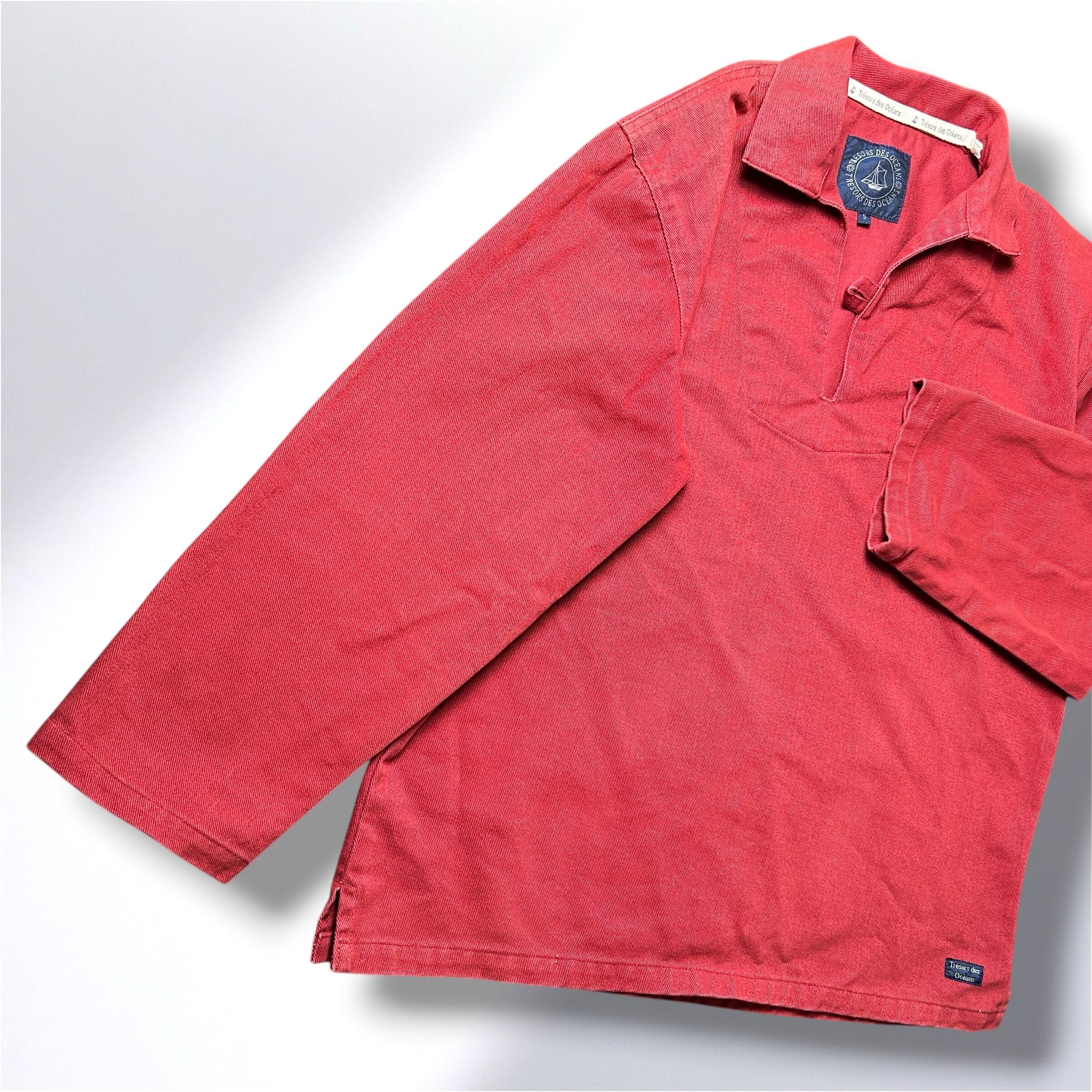 鮮やかなワインレッドが目を引くフィッシャーマンスモック。