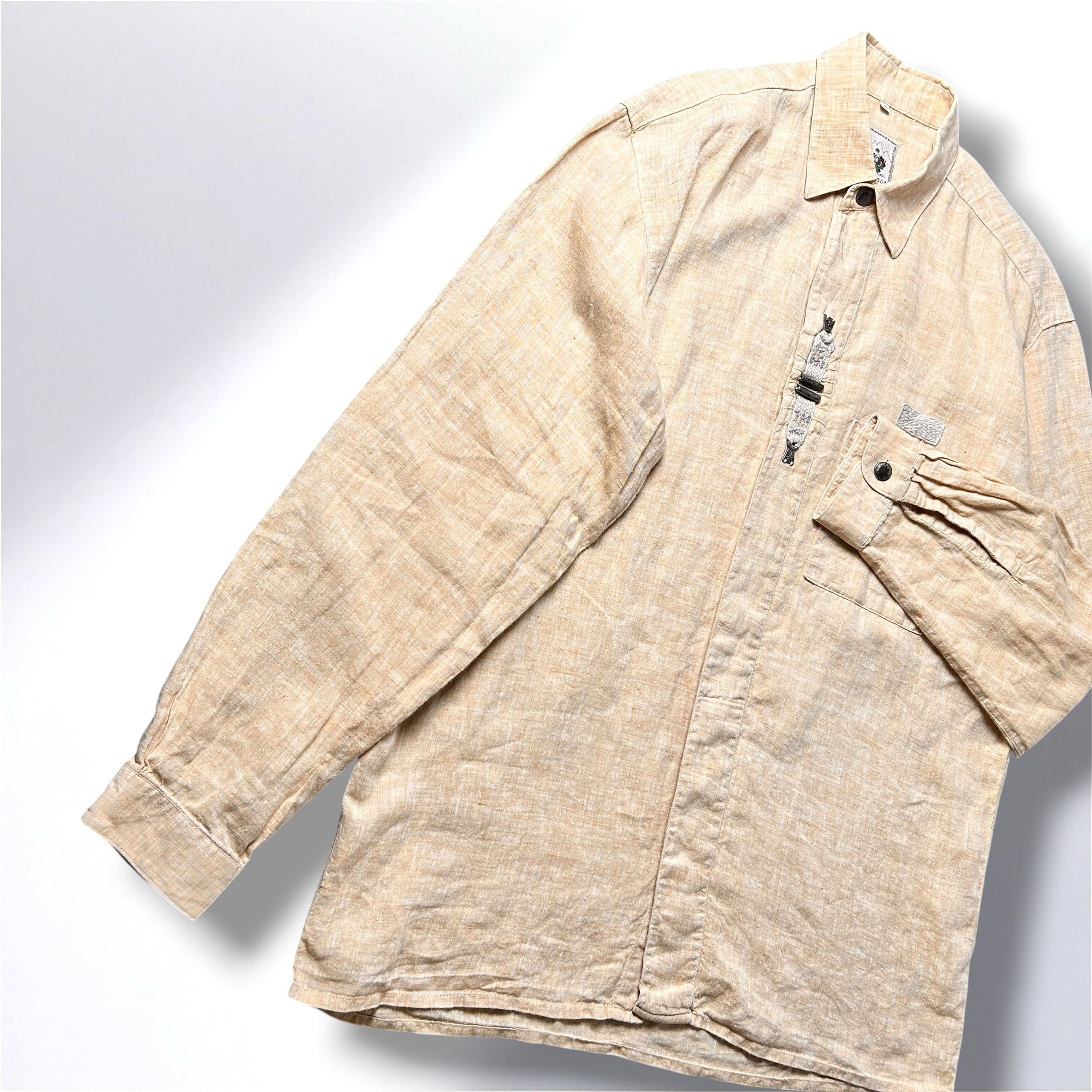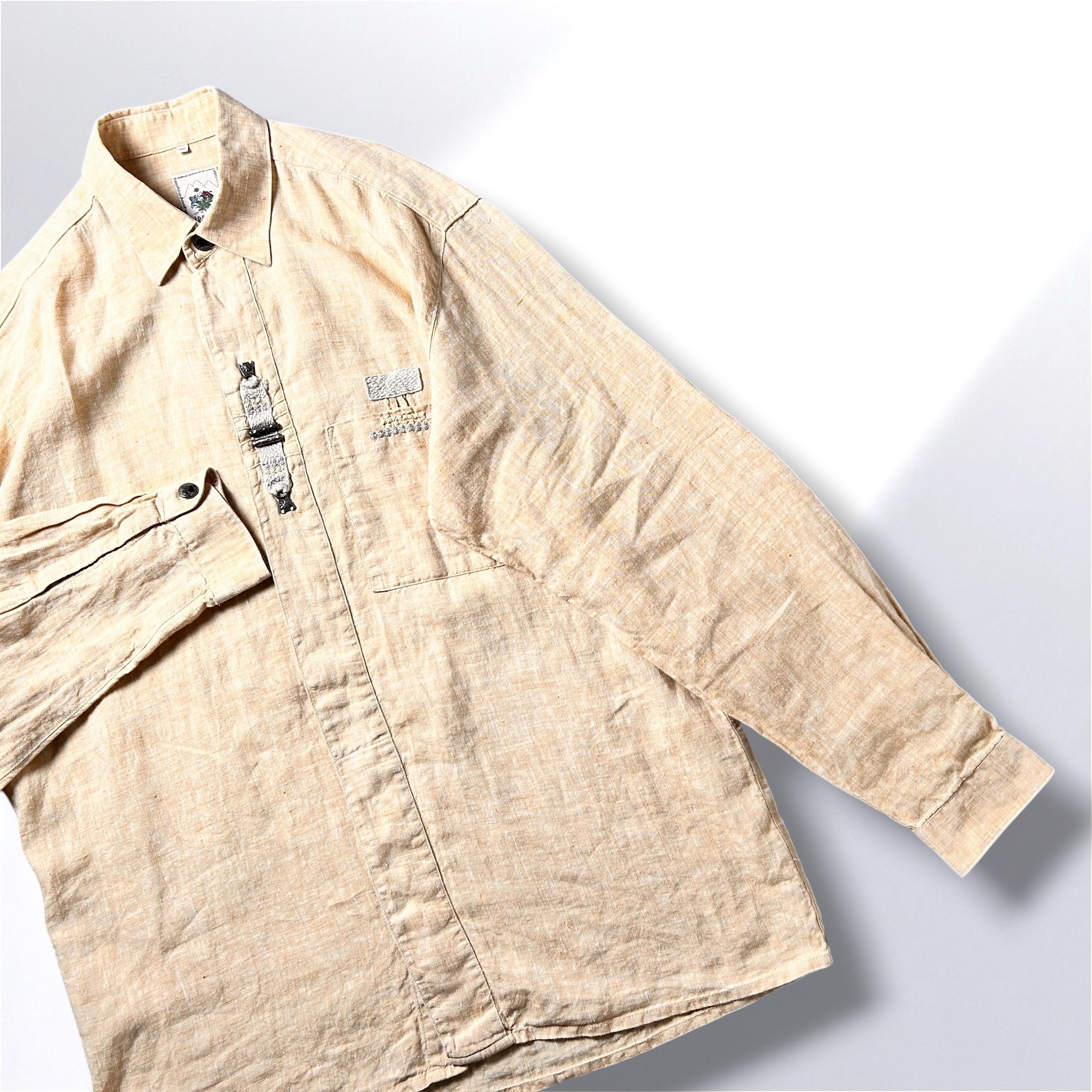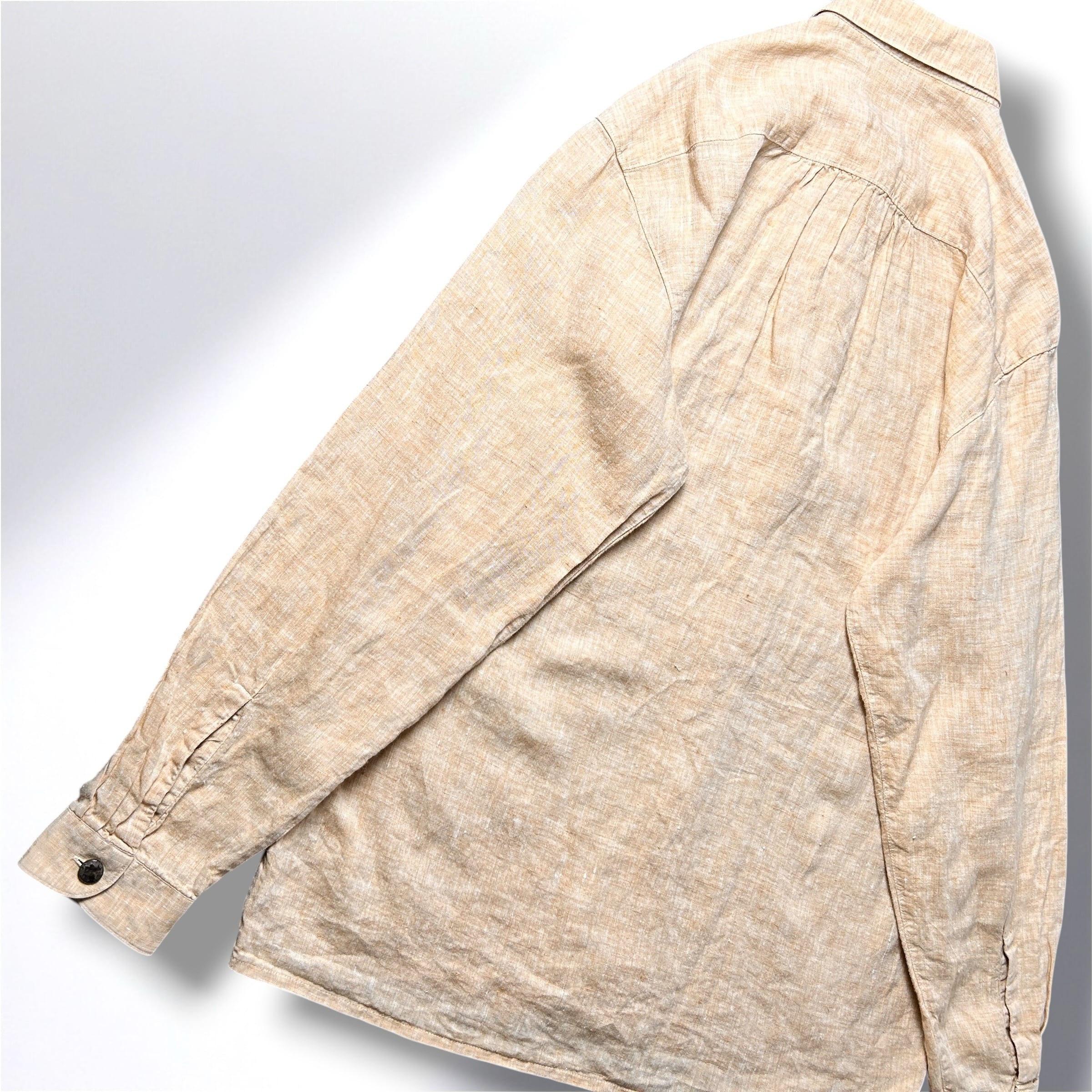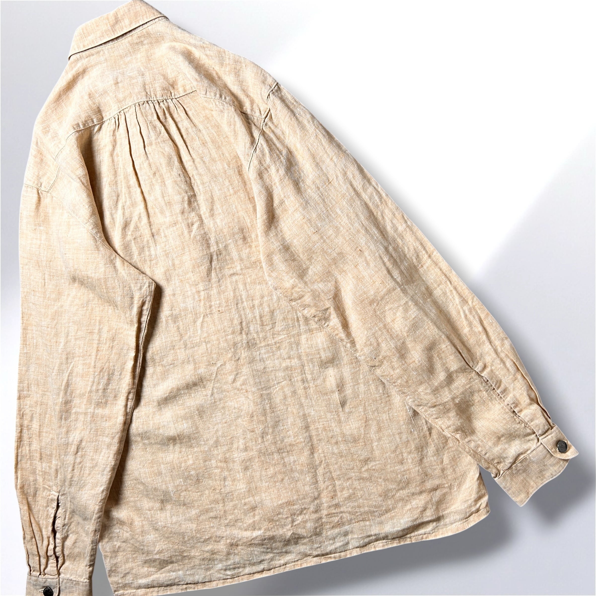 リネン×レーヨン チロリアンシャツ とろみシャツ ナチュラルベージュ
