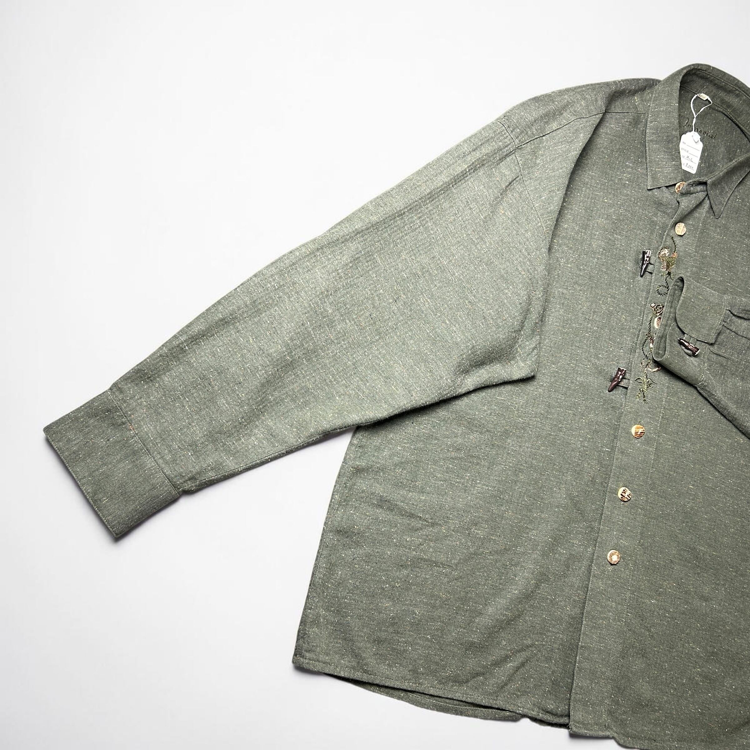 チロリアンシャツ 刺繍 トグルボタン ネップ生地 オーバーサイズ ユーロ古着